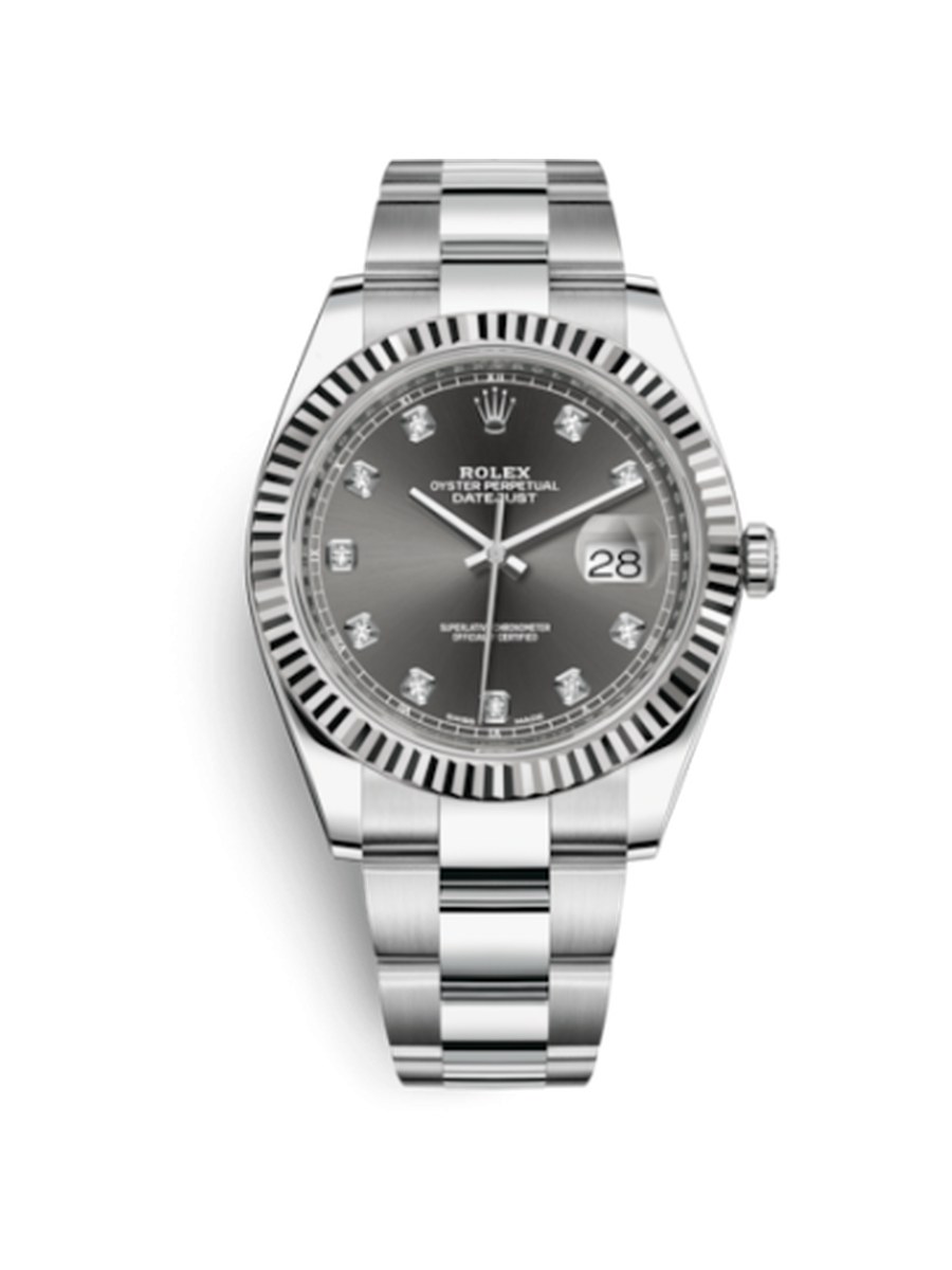 NomDatejust 41 Acier inoxydable Fluted / Oyster / Dark Rhodium - Diamant