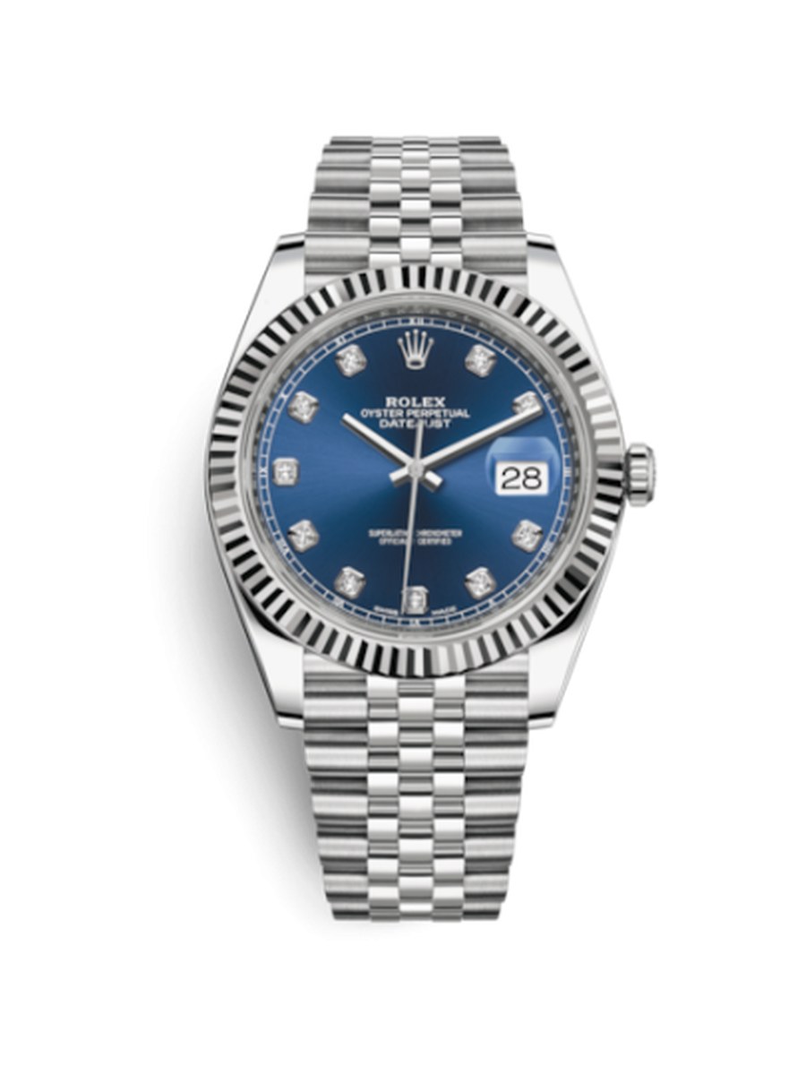 NomDatejust 41 Acier inoxydable Fluted / Jubilee / Bleu - Diamant