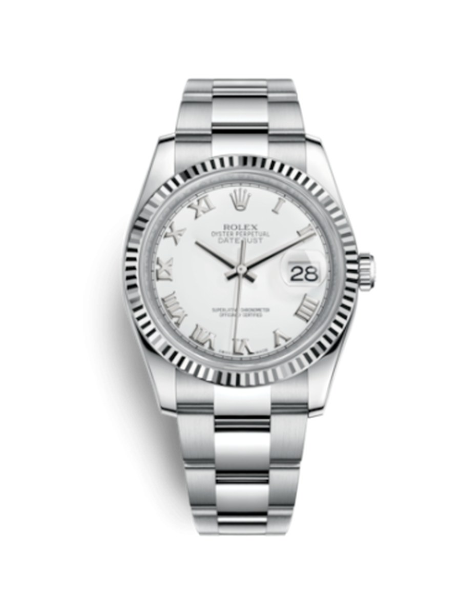 NomDatejust 36 Acier inoxydable Fluted / Oyster / Blanc Romain
