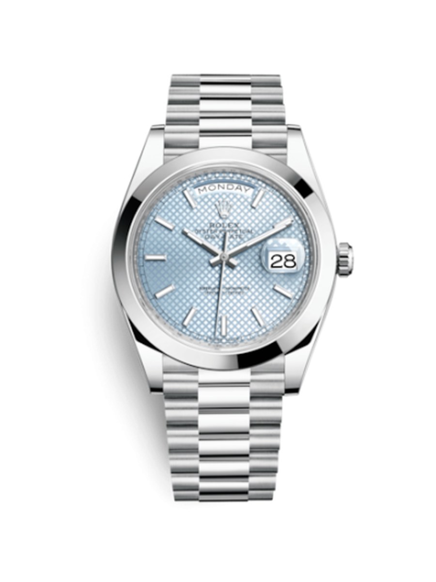 Jour-Date 40 Platine / Ice Bleu Diagonal Motif