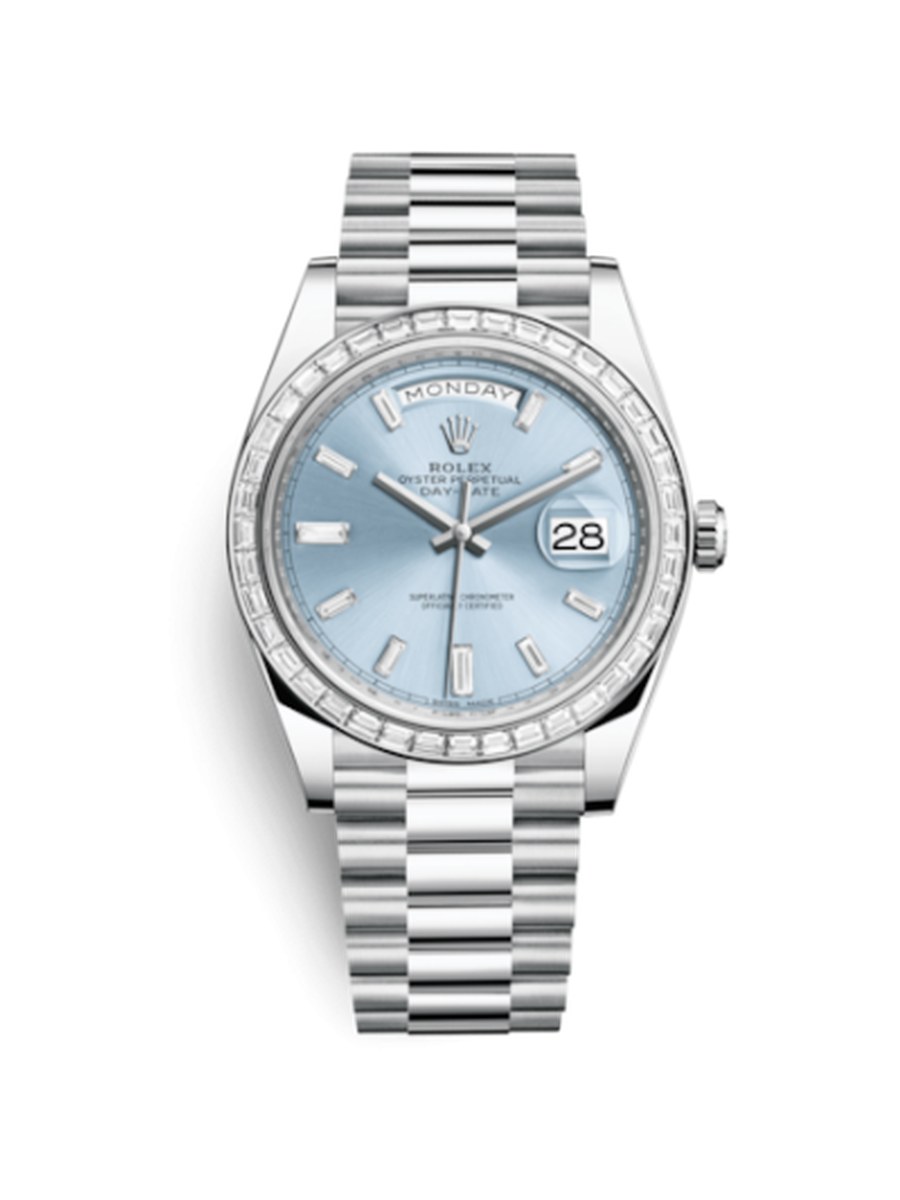 Jour-Date 40 Platine - Baguette / Ice Bleu - Baguette