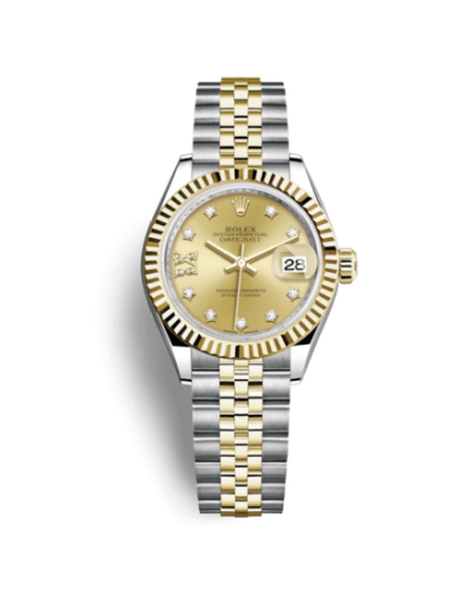 NomLady-Datejust 28 Rolesor Jaune Fluted / Jubilee / Champagne Diamant