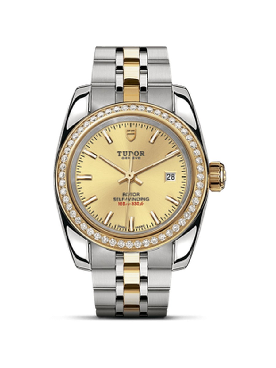 Classic 28 Acier inoxydable / Or jaune / Diamant / Champagne / Bracelet
