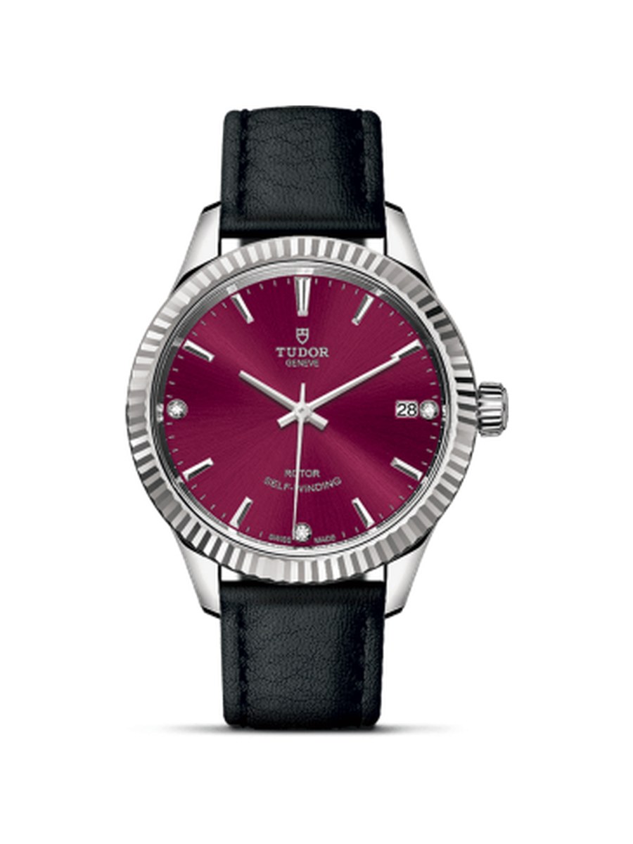 Style 34 Acier inoxydable / Fluted / Burgundy-Diamant / Strap