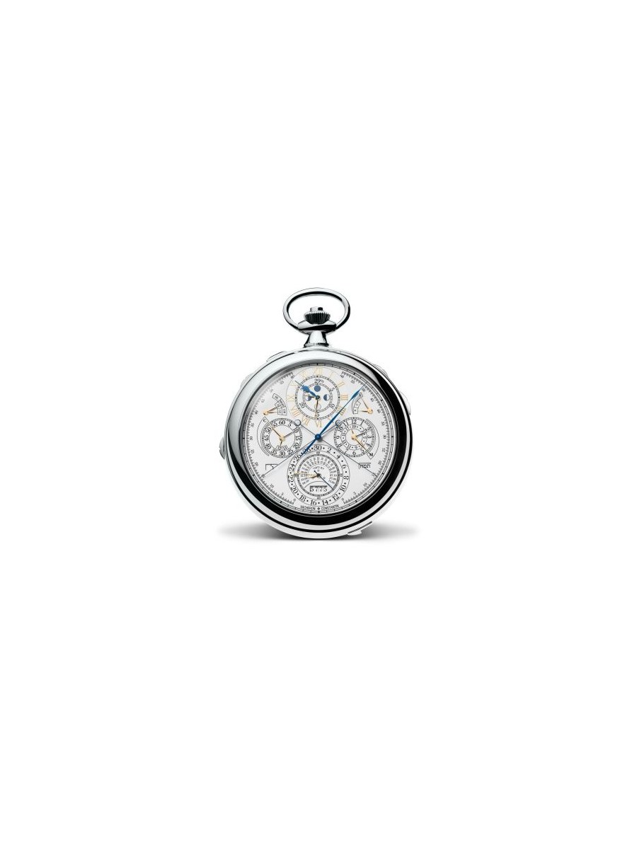 MouvementVacheron Constantin caliber 3750 Heures, Minutes, Additional 12 Hour Hand (adjustable), Additional 24 Hour Hand (fixed), Jour / Night Indication, Small Secondes, World Time | Date, Jour, Leap Année, Mois, Perpetual Calendar, Week Indicator, Année Indicator, Hebrew Calendar | Chronographe, Column wheel, Monopoussoir, Rattrapante | Equation of time, Moonphase, Sky chart, Solar time, Sidereal time, Sun position / rising time | Alarm, Grande Sonnerie, Minute Repeater, Petite Sonnerie | Power Reserve Indicator, Tourbillon Escapement