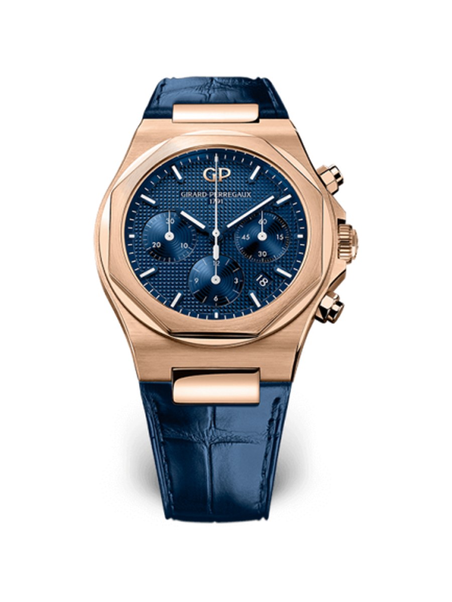 NameLaureato 42 Chronograph Pink Gold / Blue / Alligator