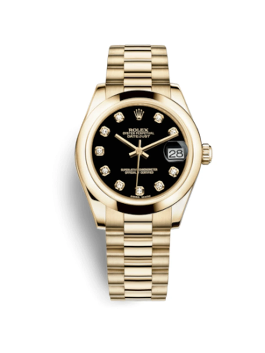 Datejust 31 Yellow Gold Domed / President / Black Diamond