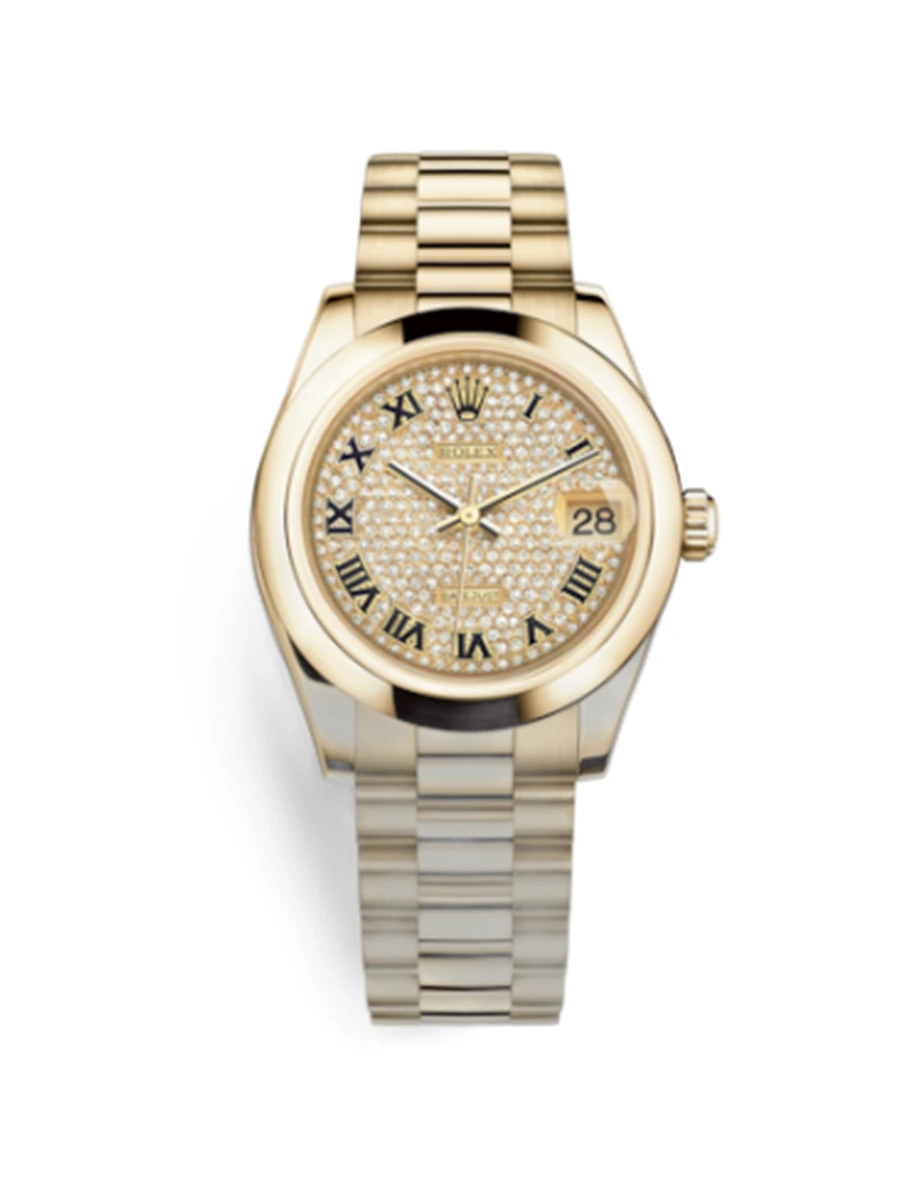 Datejust 31 Yellow Gold Domed / President / Paved Roman