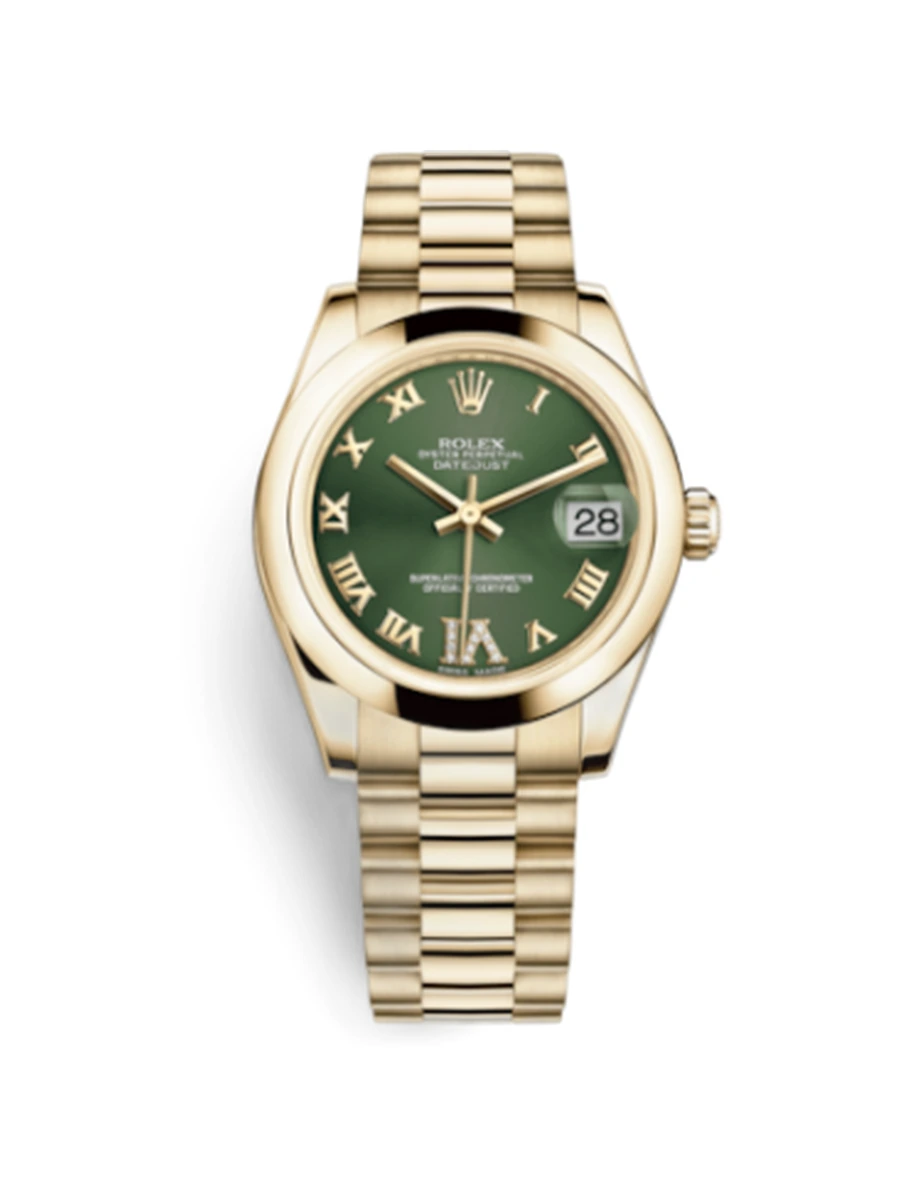Datejust 31 Yellow Gold Domed / President / Olive Roman