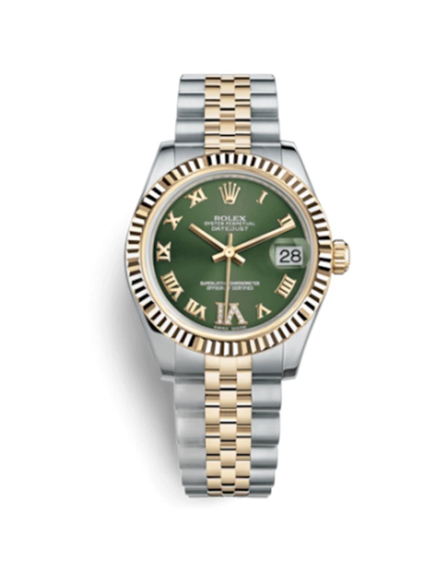 NameDatejust 31 Rolesor Yellow Fluted / Jubilee / Olive Green Roman