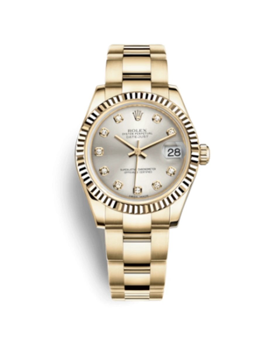 NameDatejust 31 Yellow Gold Fluted / Oyster / Silver Diamond
