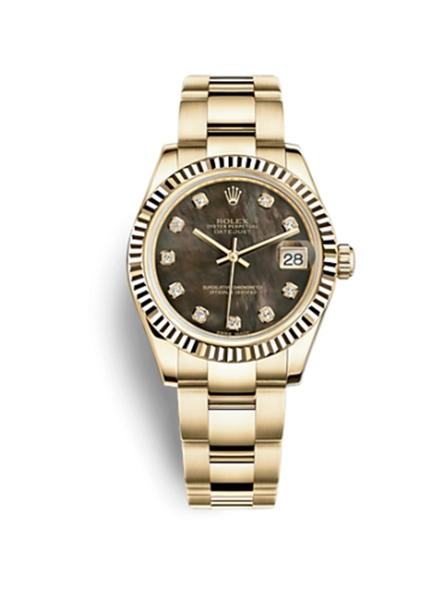 NameDatejust 31 Yellow Gold Fluted / Oyster / Black MOP