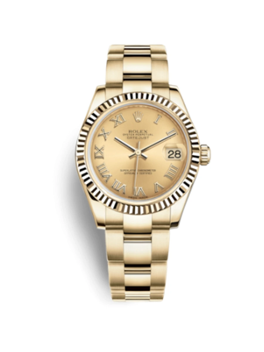 Datejust 31 Yellow Gold Fluted / Oyster / Champagne Roman