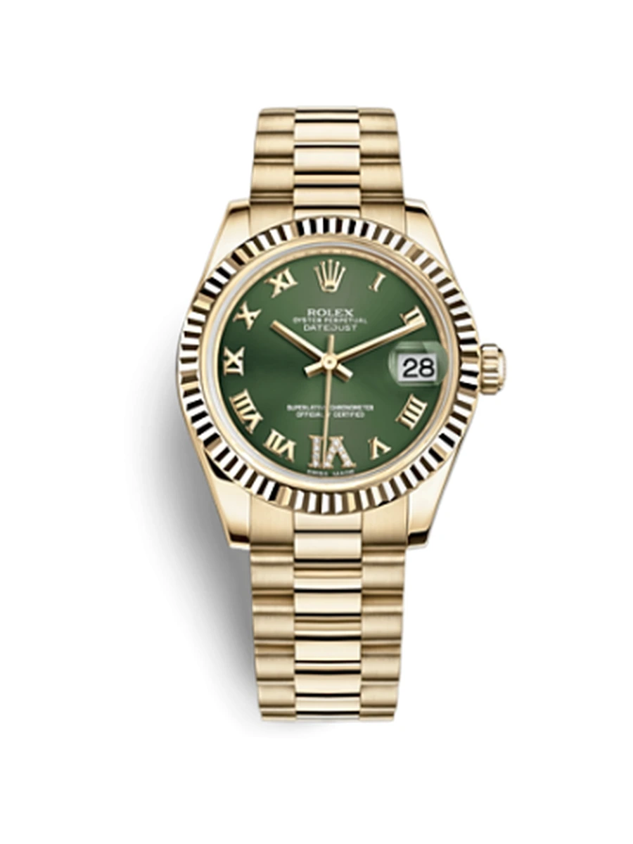 Datejust 31 Yellow Gold Fluted / President / Olive Roman