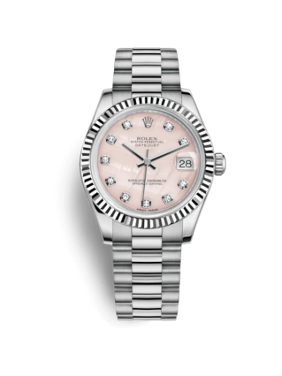 NameDatejust 31 White Gold Fluted / President / Pink MOP