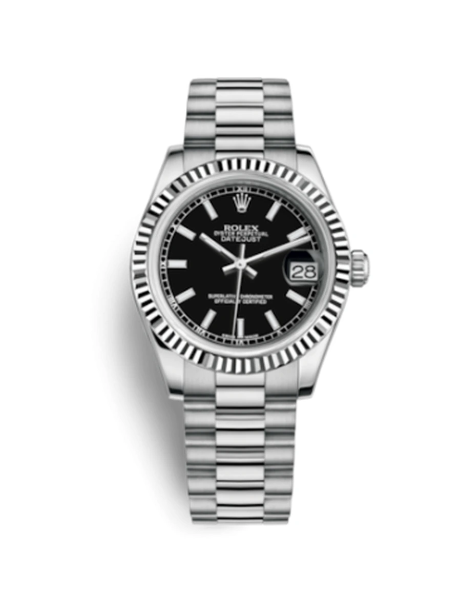 NameDatejust 31 White Gold Fluted / President / Black