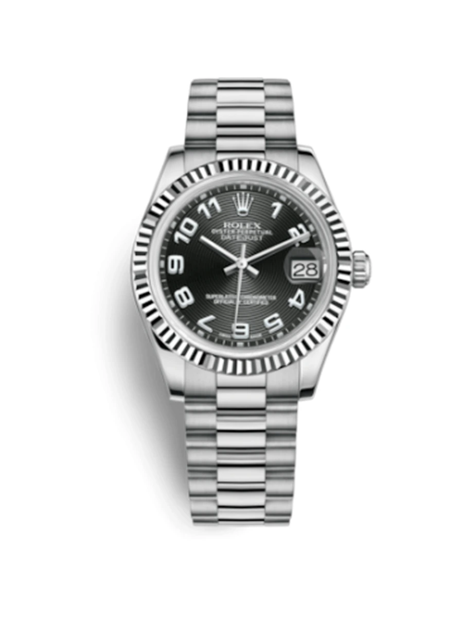 NameDatejust 31 White Gold Fluted / President / Black Arabic