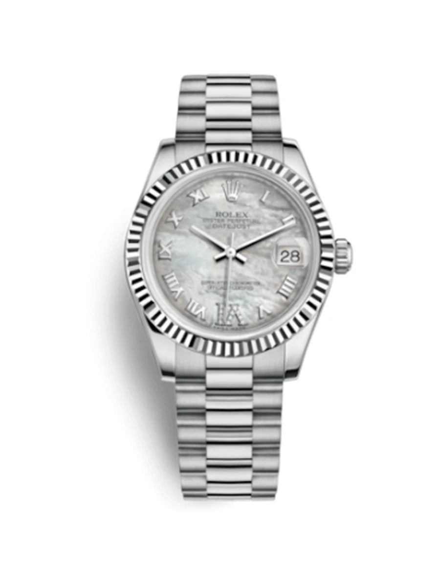 NameDatejust 31 White Gold Fluted / President / MOP Roman