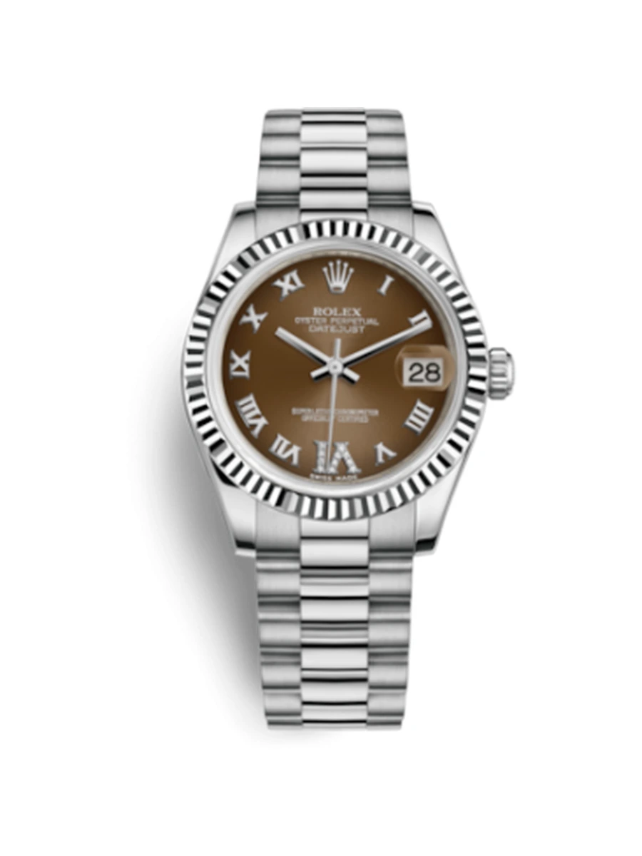 NameDatejust 31 White Gold Fluted / President / Bronze Roman