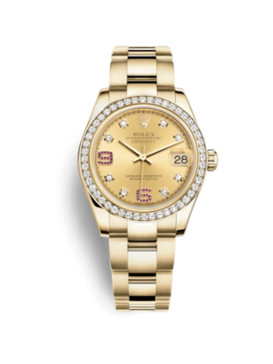 NameDatejust 31 Yellow Gold Diamond / Oyster / Champagne Diamonds Rubies