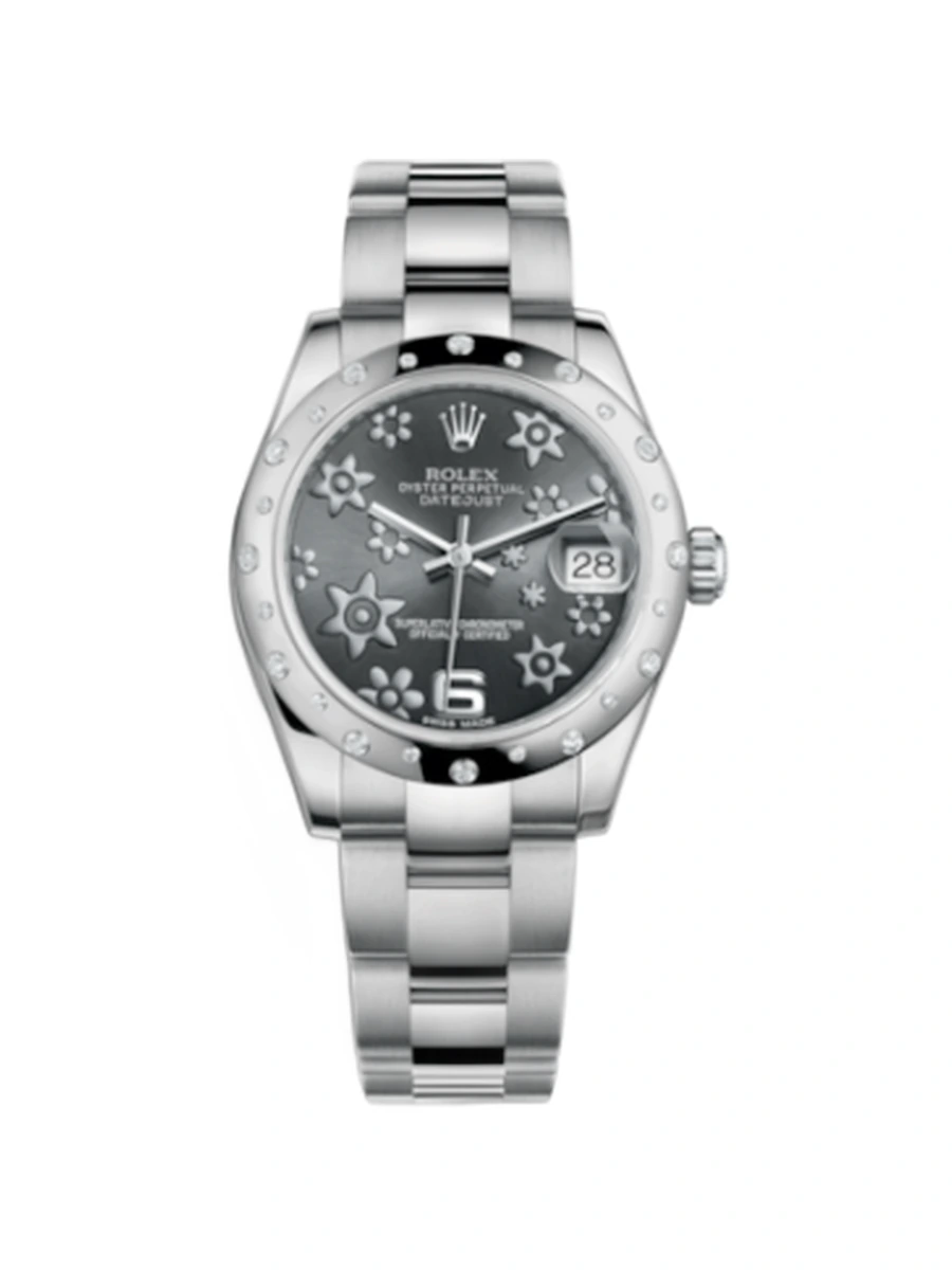 NameDatejust 31 Stainless Steel Domed Diamond / Oyster / Dark Rhodium Floral