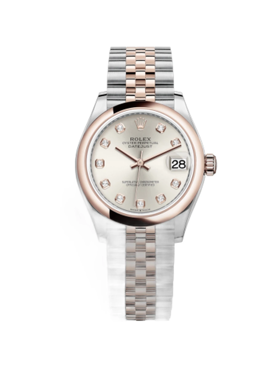 Datejust 31 Stainless Steel / Rose Gold / Domed / Silver - Diamond / Jubilee