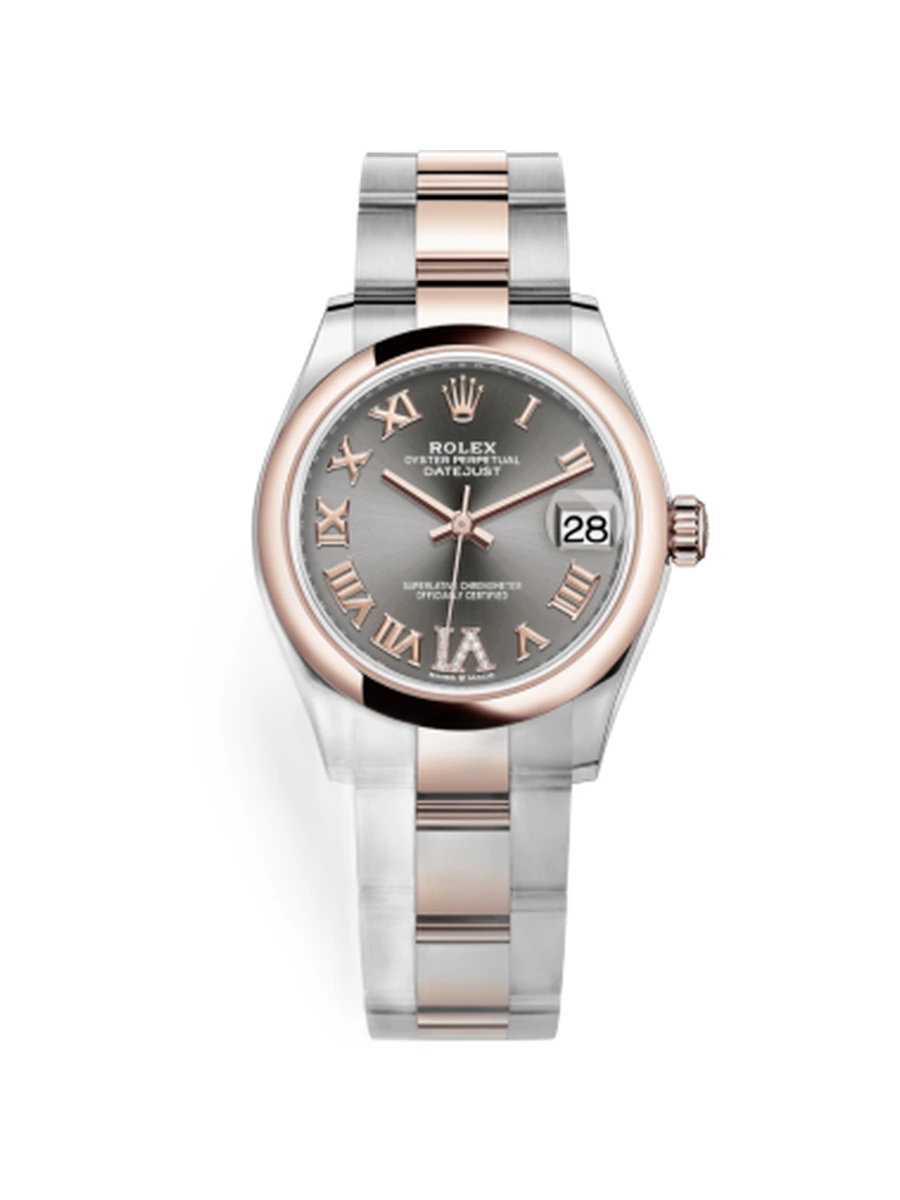 NameDatejust 31 Stainless Steel/ Rose Gold / Domed / Grey - Roman / Oyster