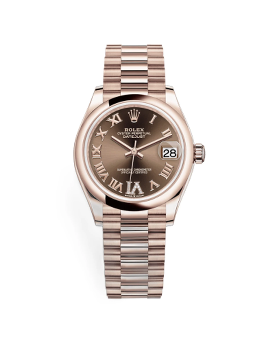 NameDatejust 31 Rose Gold / Domed / Chocolate - Roman / President