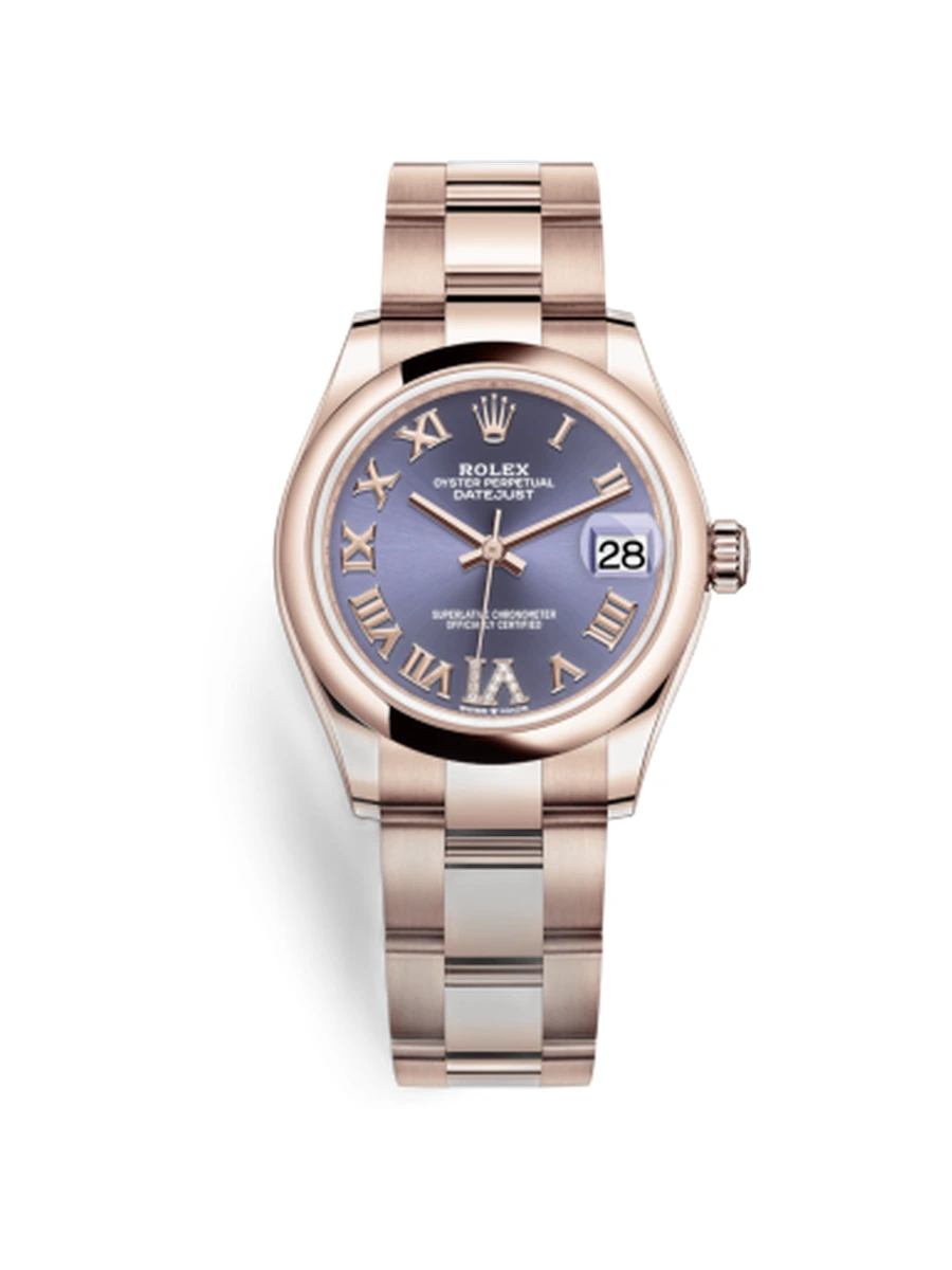 Datejust 31 Rose Gold / Domed / Aubergine - Roman / Oyster