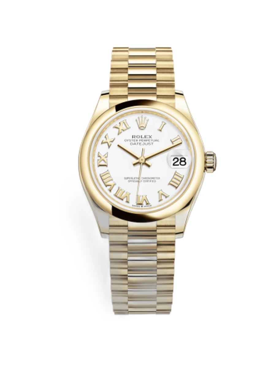 Datejust 31 Yellow Gold / Domed / White - Roman / President