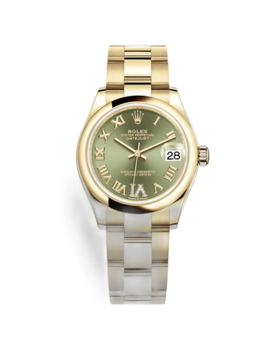 NameDatejust 31 Yellow Gold / Domed / Olive - Roman / Oyster