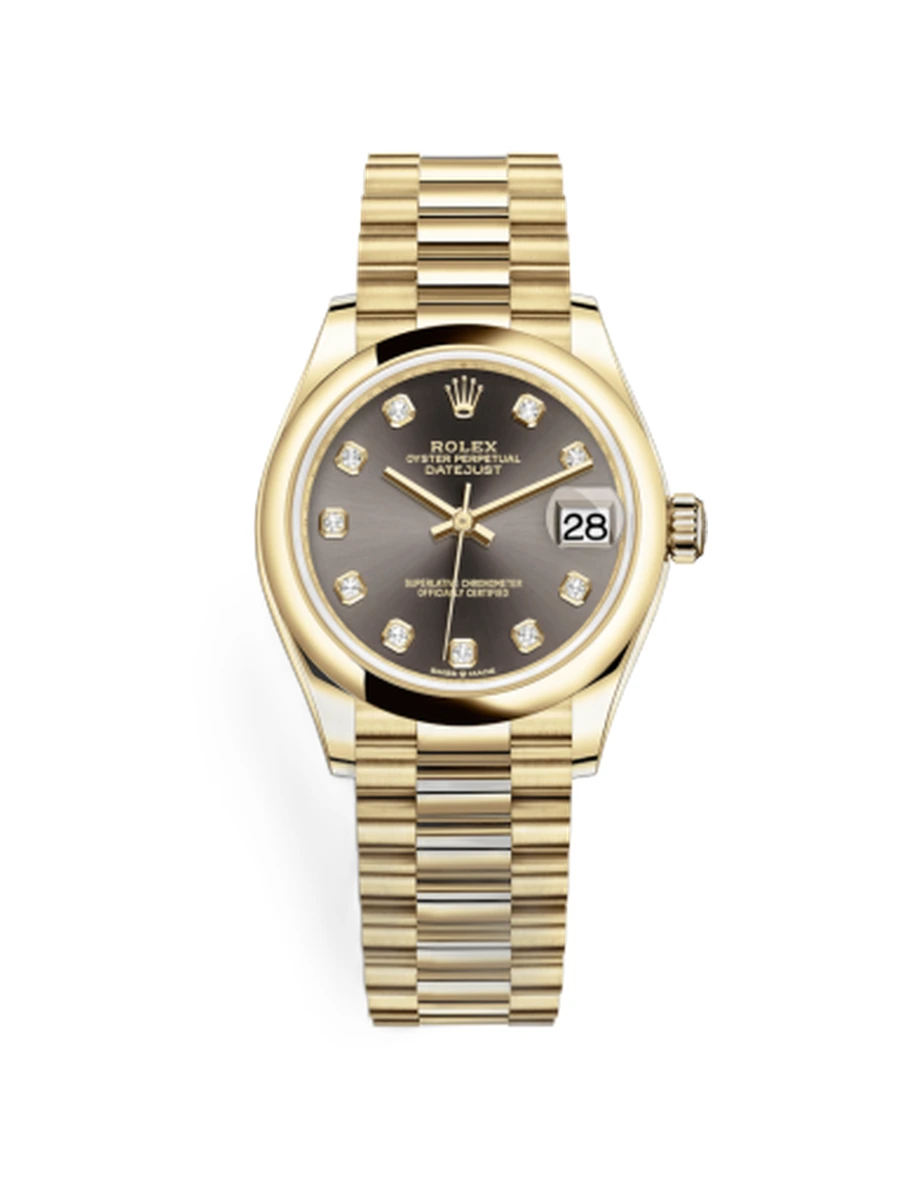 Datejust 31 Yellow Gold / Domed / Grey - Diamond / President
