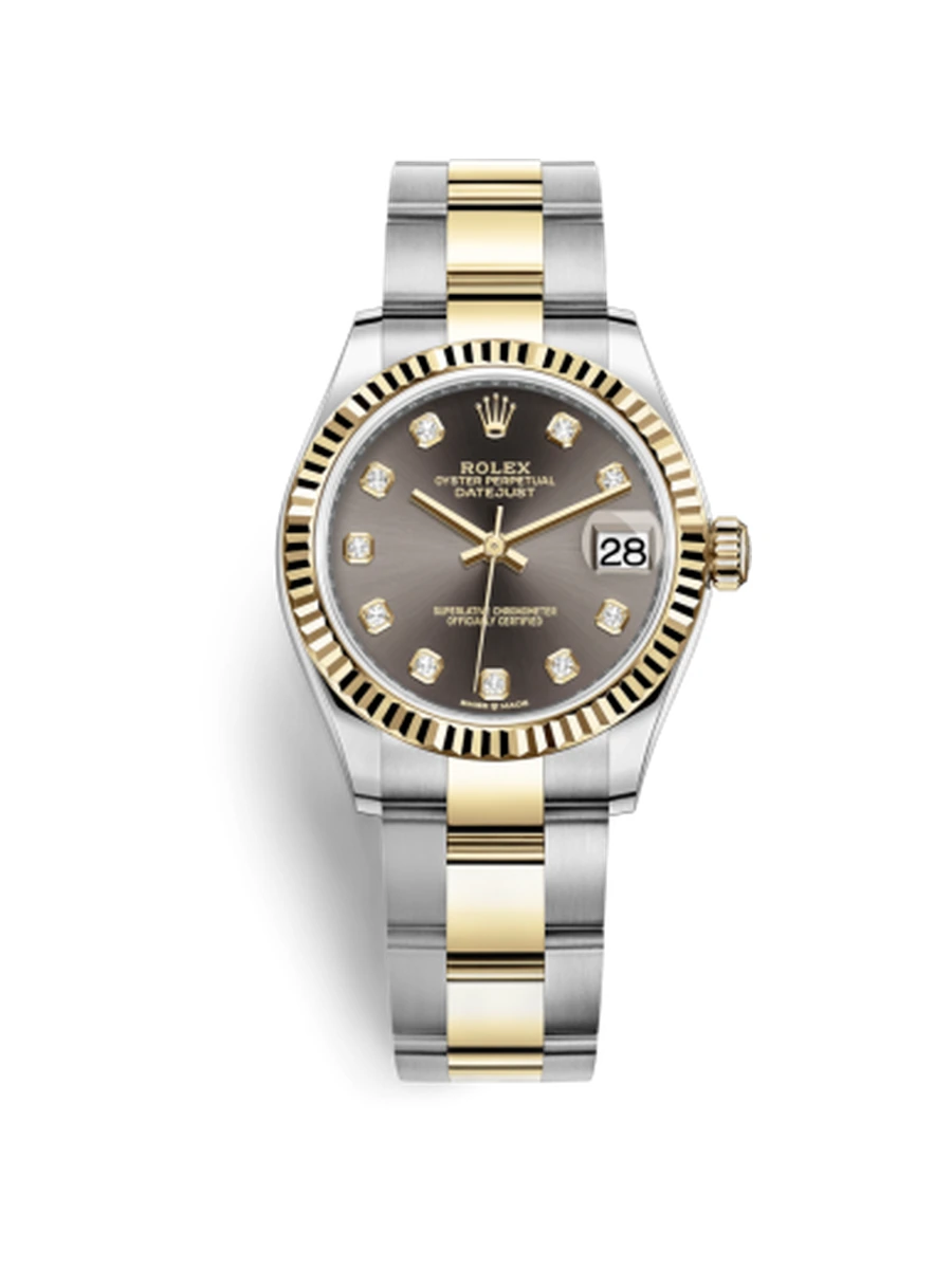 Datejust 31 Stainless Steel / Yellow Gold / Fluted / Grey - Diamond / Oyster