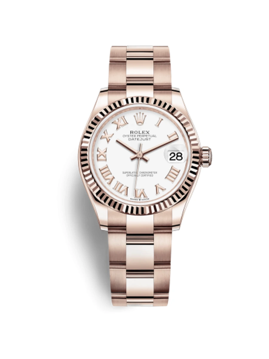 Datejust 31 Rose Gold / Fluted / White - Roman / Oyster