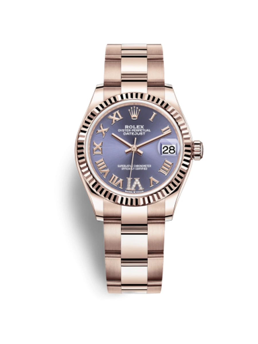Datejust 31 Rose Gold / Fluted / Aubergine - Roman / Oyster