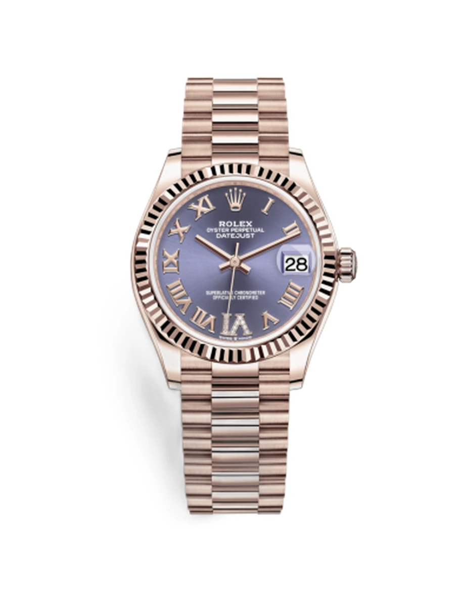 NameDatejust 31 Rose Gold / Fluted / Aubergine - Roman / President