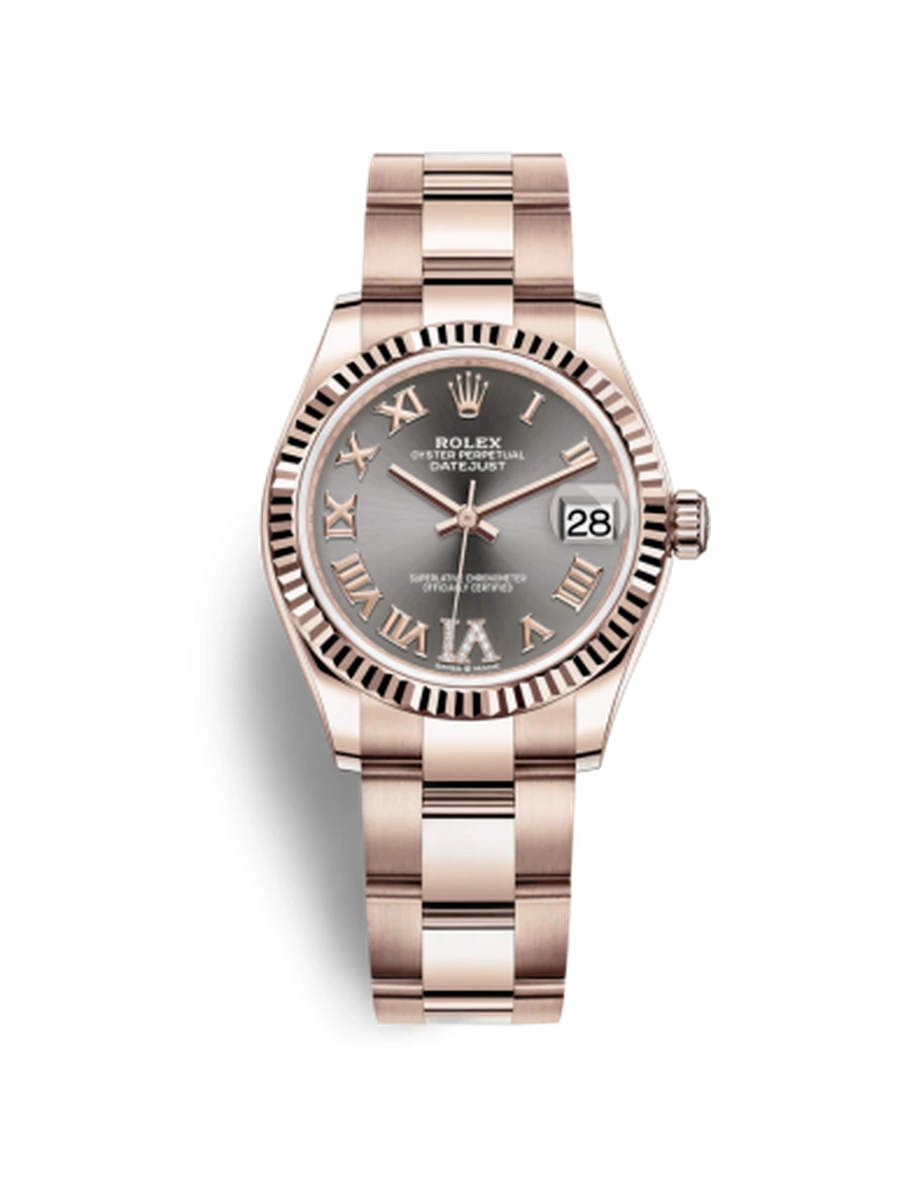 Datejust 31 Rose Gold / Fluted / Grey - Roman / Oyster