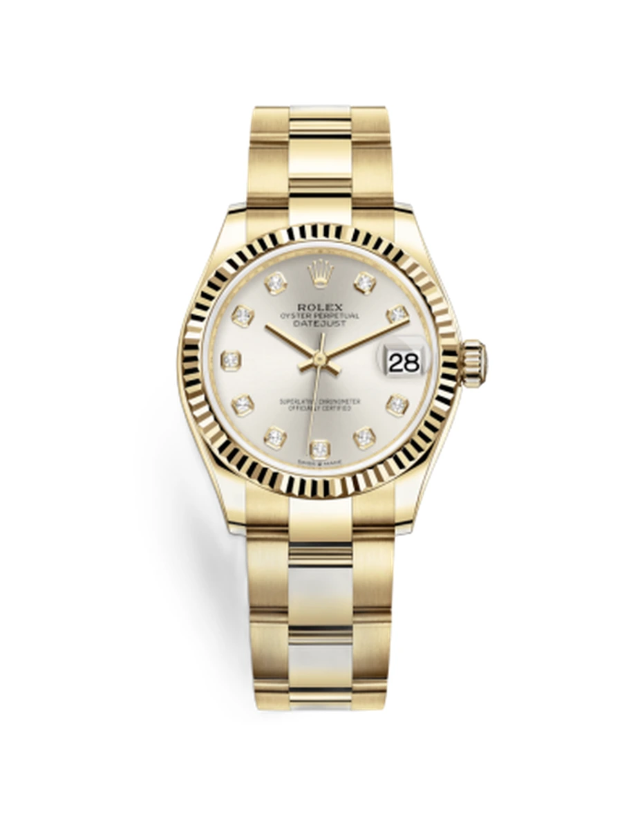 NameDatejust 31 Yellow Gold / Fluted / Silver - Diamond / Oyster
