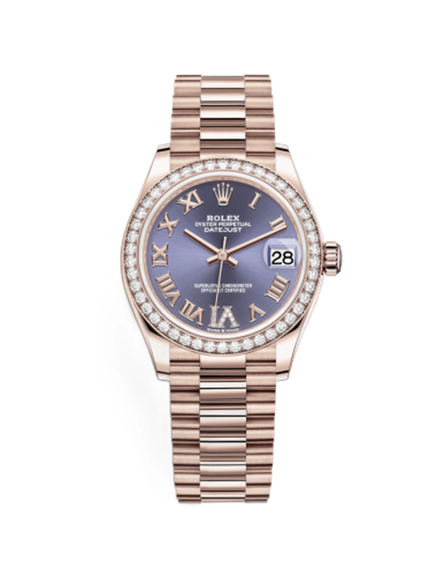 Datejust 31 Rose Gold / Diamond / Aubergine - Roman / President