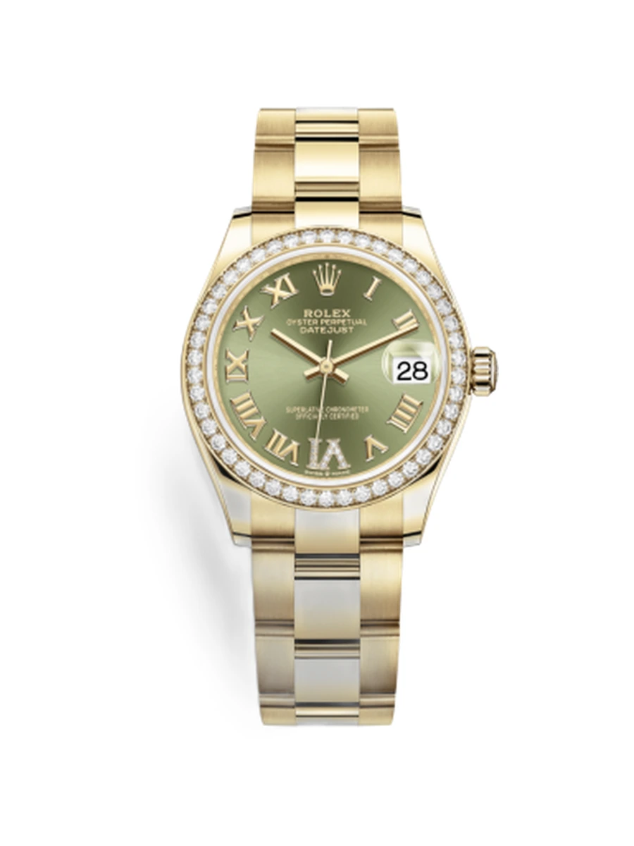 NameDatejust 31 Yellow Gold / Diamond / Olive - Roman / Oyster