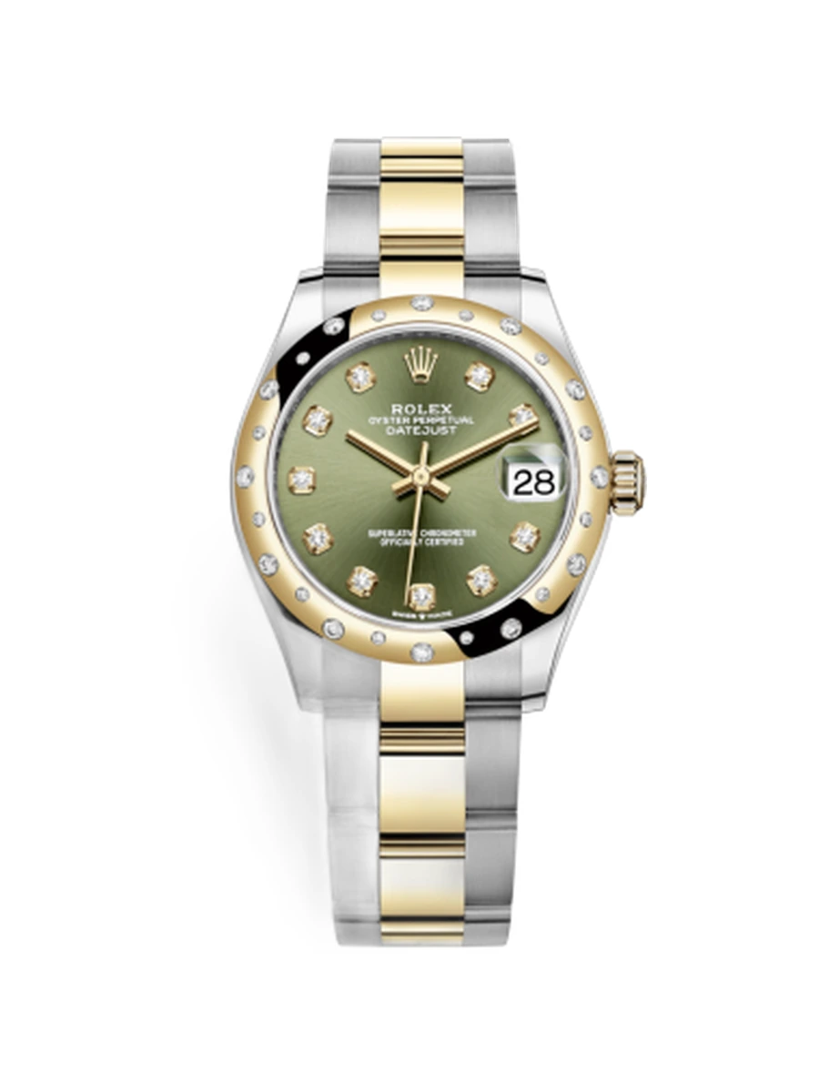 Datejust 31 Stainless Steel / Yellow Gold / Domed - Diamond / Olive - Diamond / Oyster