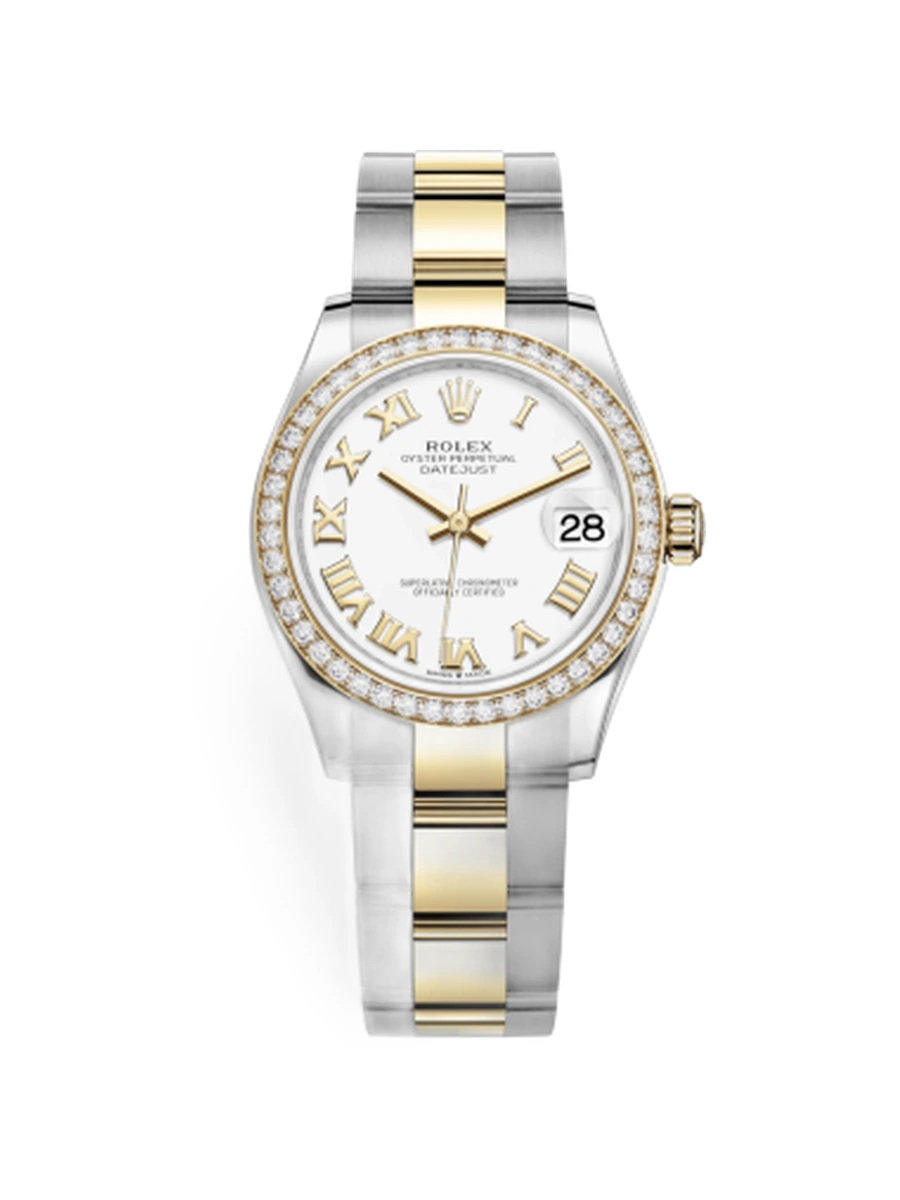 Datejust 31 Stainless Steel / Yellow Gold / Diamond / White - Roman / Oyster