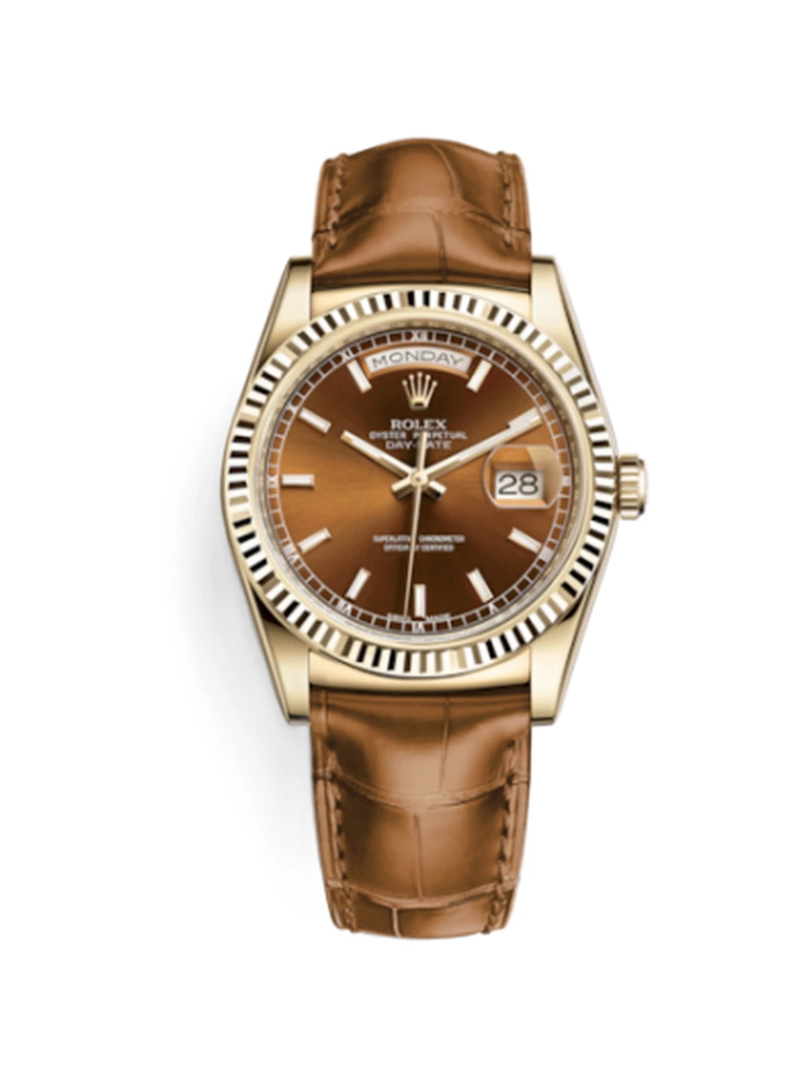 NameDay-Date 36 Yellow Gold / Strap / Cognac