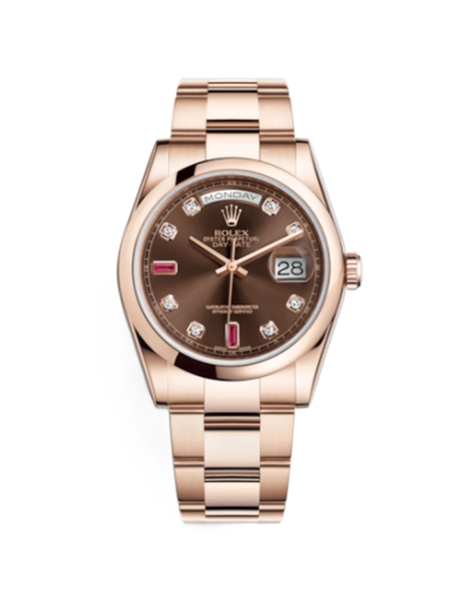 Day-Date 36 Everose Domed / Oyster / Chocolate Diamonds Rubies