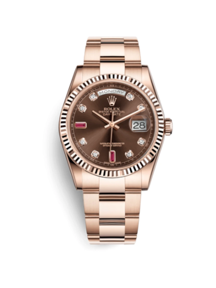 Day-Date 36 Everose Fluted / Oyster / Chocolate Diamonds Rubies