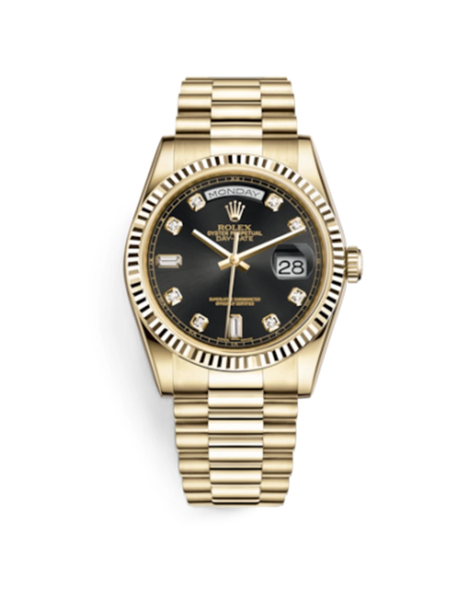 Day-Date 36 Yellow Gold Fluted / President / Black Diamonds