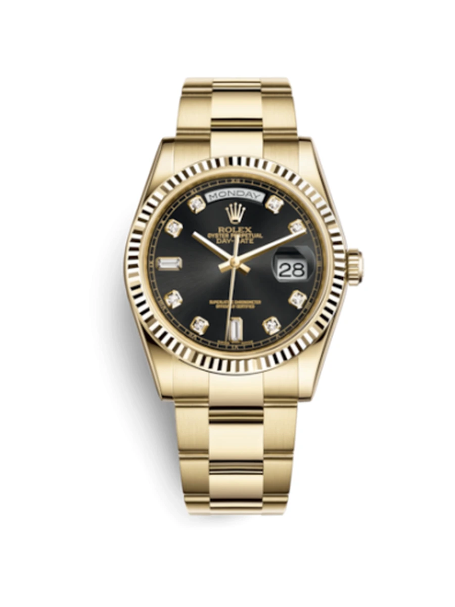 Day-Date 36 Yellow Gold Fluted / Oyster / Black Diamonds