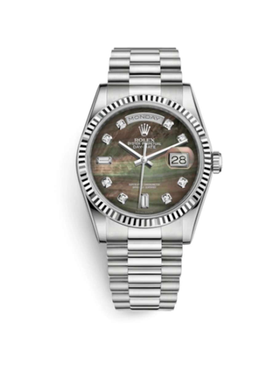 Day-Date 36 White Gold Fluted / President / Black MOP