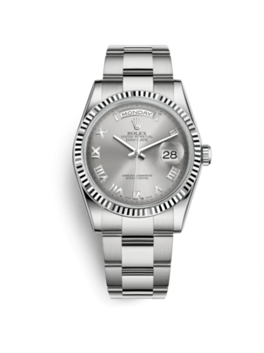 Day-Date 36 White Gold Fluted / Oyster / Grey Roman