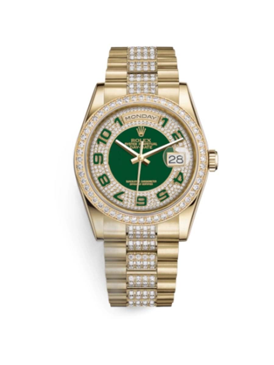 Day-Date 36 Yellow Gold Diamonds / President Diamonds / Green Paved